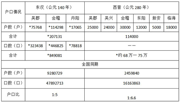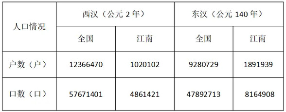 江南人口爆发的原因很复杂,除地理气候等自然因素外,社会环境的改善至关重要。总体而言,两晋之前的江南地区政局相对稳定,西汉初年七国之乱后,江南多数时间只是有限地被卷人中原动荡,战争损耗相对较少。西晋初期,中原因长期战乱,人力折损过半,然而浙江地区的人口较东汉时变化不大(见表2)。