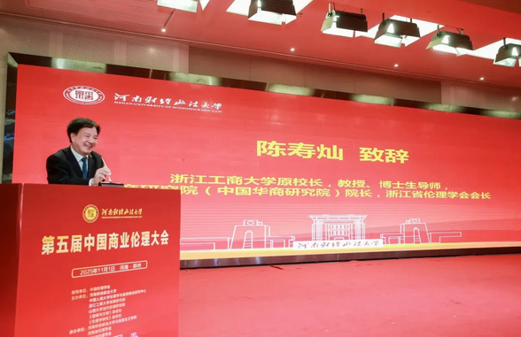 11月1日,第五届中国商业伦理大会在河南财经政法大学启幕。浙商研究院(中国华商研究院)院长、浙江省伦理学会会长陈寿灿教授率智库研究团队赴豫参会。
