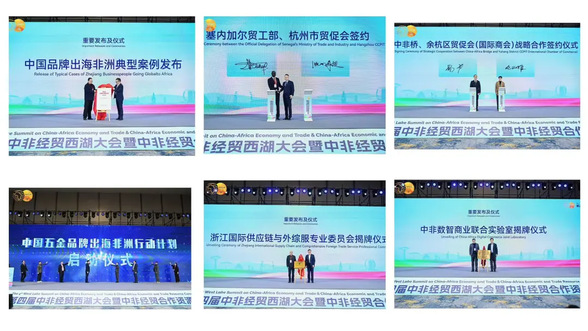 “重要发布及仪式”环节成为合作新起点:华为集团、华友钴业、巨石集团、传音控股等10家企业入选“浙商出海非洲典型案例”,其“技术输出+本地化运营+生态共建”模式成为行业标杆;塞内加尔贸工部与杭州市贸促会、中非桥与余杭区贸促会分别签署战略合作协议;中国五金品牌出海非洲行动计划正式启动,浙江国际供应链与外综服专业委员会、中非数智商业联合实验室同步揭牌,为中非合作提供全链条支撑。