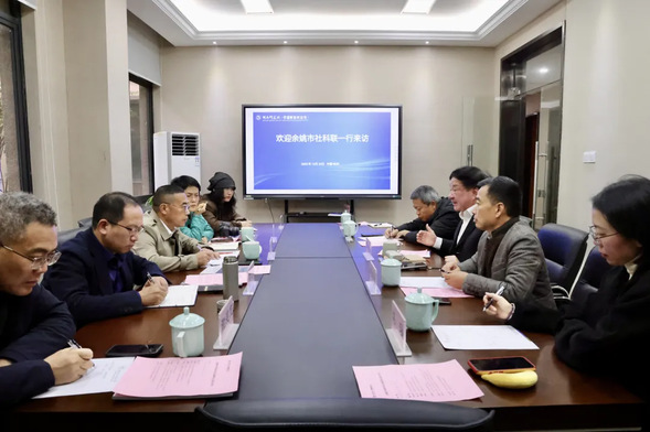 12月22日,余姚市委宣传部常务副部长、市社科联主席黄桂树,市社科联专职副主席黄士杰等一行到访浙江工商大学浙商研究院(中国华商研究院),与浙江省政府咨询委员、浙商研究院院长陈寿灿,副院长赵浩兴等专家学者座谈交流,共商阳明文化传承与企业家精神弘扬,探索校地合作新路径。