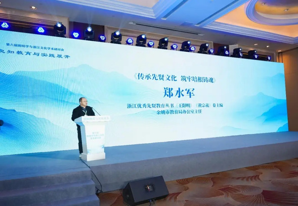 浙江优秀先贤教育丛书《王阳明》《黄宗羲》卷主编、余姚市教育局办公室主任郑水军在演讲中分享了余姚以传承先贤文化为核心,筑牢培根铸魂教育根基的实践探索。当地教育以阳明文化为底色深耕幸福教育,通过编写专题教材、推出地方读本等具体举措,为破解传统文化传承难题提供了切实可行的余姚方案。
