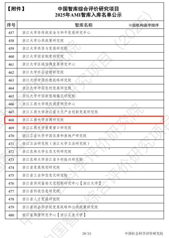 浙商研究院双喜临门,成功入选中国智库综合评价研究项目2025年AMI智库,同时跻身杭州市首批新型重点专业智库行列,凭借扎实的研究实力与服务效能,获评“全国影响力建设智库”,智库品牌影响力与行业认可度实现跨越式提升。