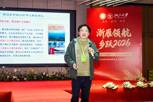 2026年1月26日,由浙江大学新农村发展研究院与浙江杭州建德市人民政府联合打造的“青・城纪”青年入乡发展基地正式开园。以“AI赋能乡村振兴”为主题的“青・城荟”头雁沙龙同步举行,来自浙江全省的200名乡村产业振兴带头人齐聚一堂,共绘乡村振兴蓝图。浙江省人民政府咨询委员会委员、浙江工商大学浙商研究院(中国华商研究院)院长、首席专家陈寿灿教授应邀出席开园仪式,并作题为“‘十五五’开局乡村振兴宏观趋势与实践路径”的主旨报告。